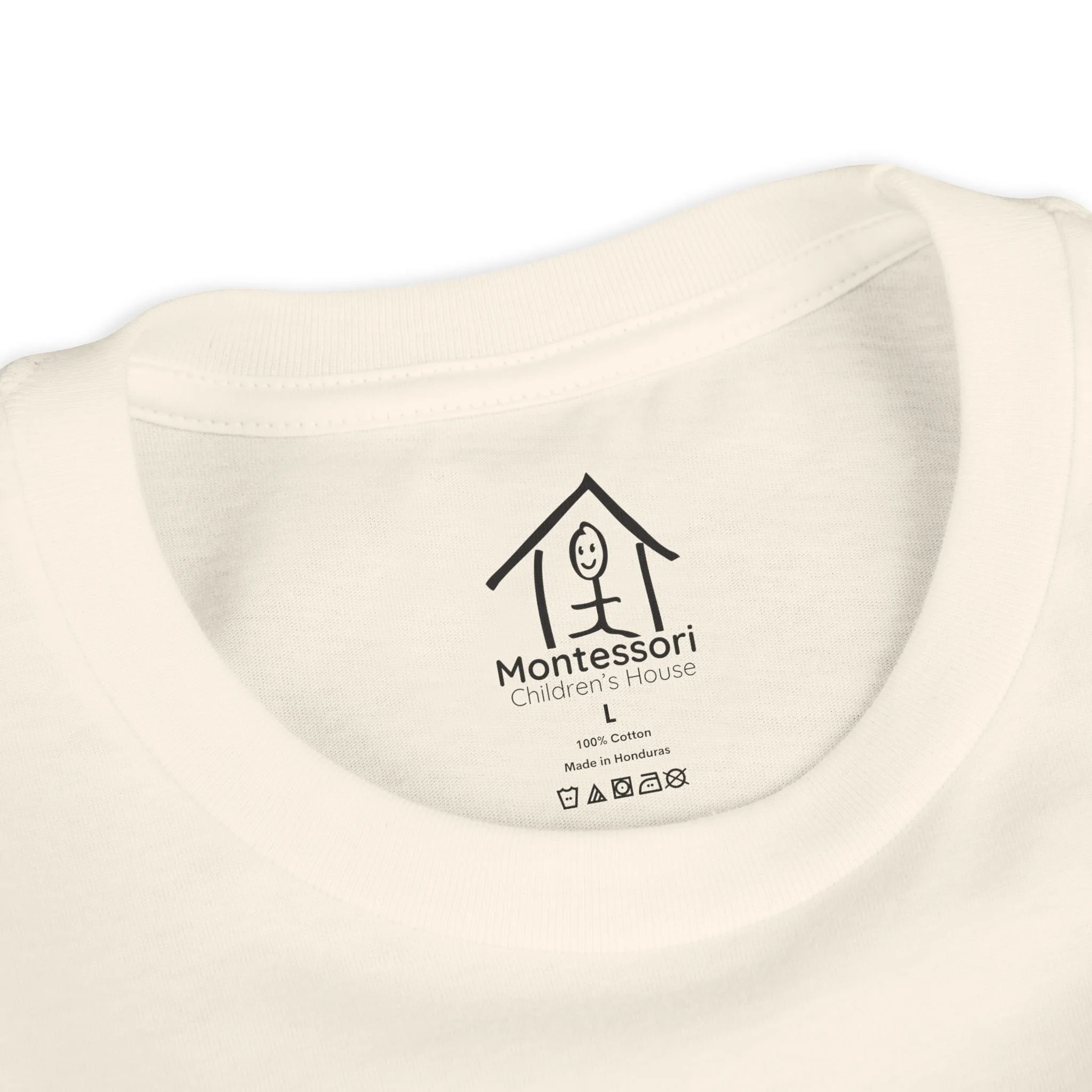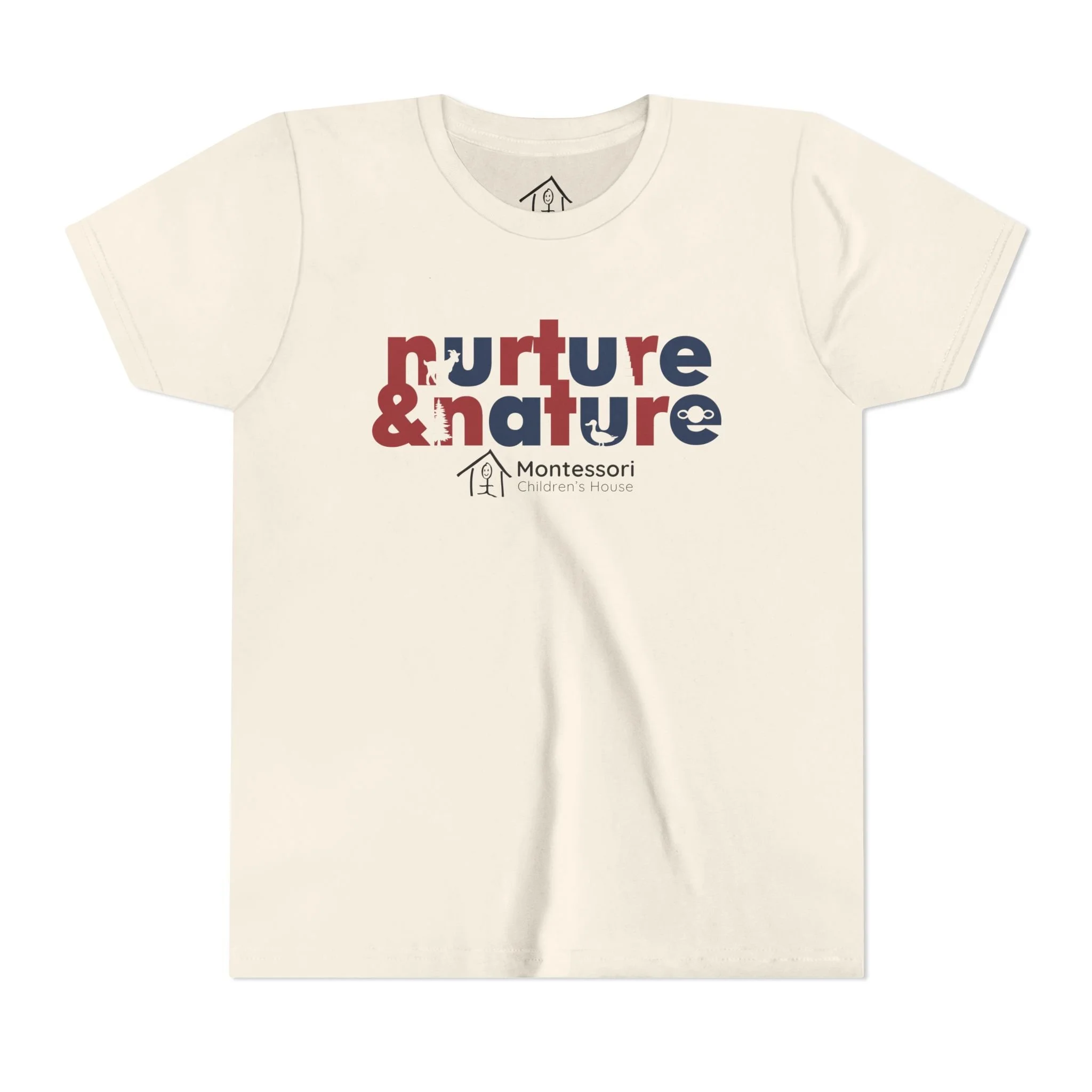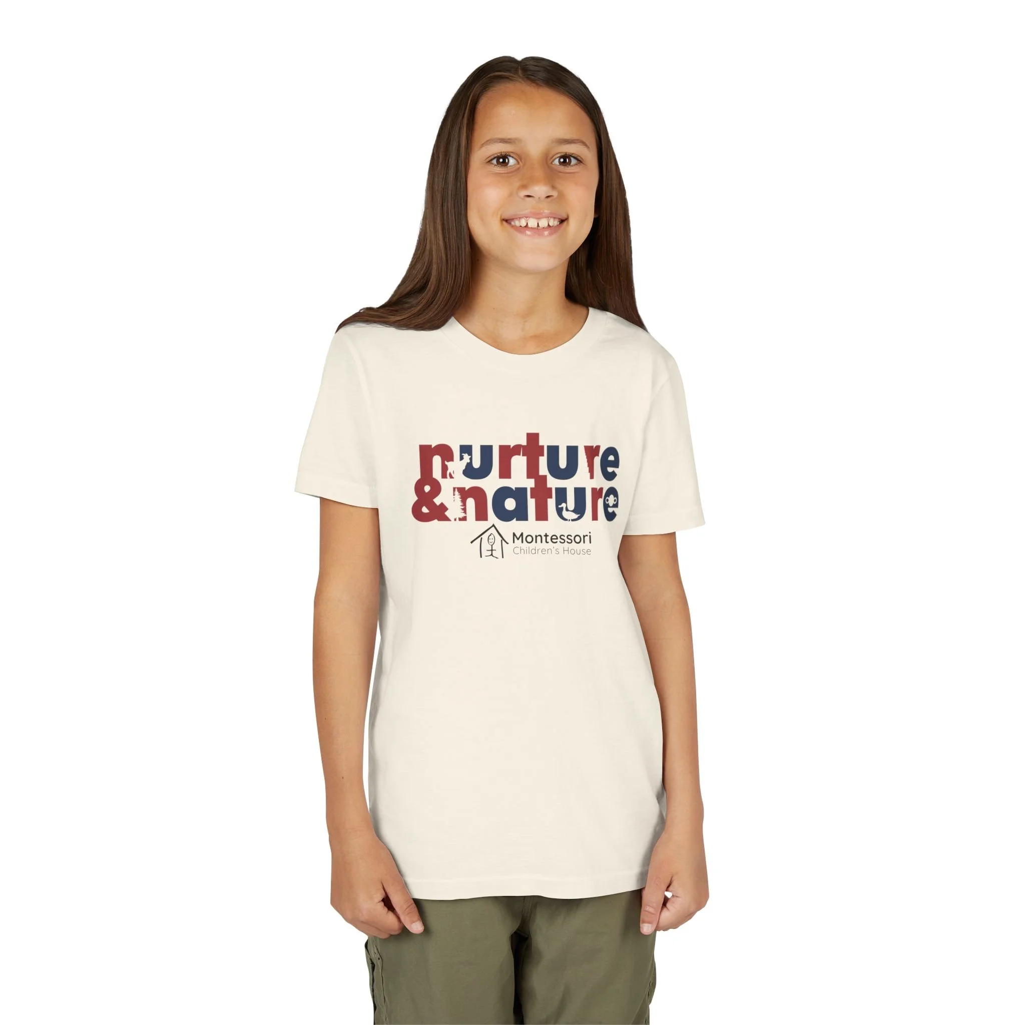 Soft, lightweight tee made for curious kids who love exploring the world around them. The gentle cream fabric and playful “nurture & nature” graphic bring a calm, thoughtful vibe — like a quiet morning outdoors or a sunny classroom activity. It sits comfortably with a retail fit and a crew neckline that keeps movement easy during playtime, gardening, or hands-on learning. Durable construction details (side seams, shoulder tape, ribbed collar) mean this shirt holds its shape through washes and active days. Subtle Montessori branding beneath the design signals a learning-focused approach without being loud. Wear it to school events, nature walks, or small-group activities where comfort and mindful style matter.